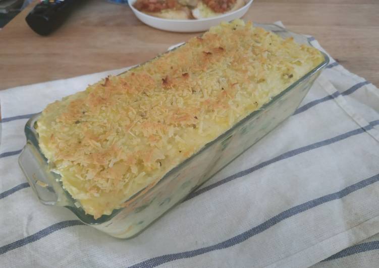 - Oleskan mentega didalam pyrex, lalu bagi-bagi susunan dengan sebagian kentang dibagian bawah lalu tumisan isi di atasnya, tutup dengan kentang lalu tumisan isi di atasnya lalu tutup lagi dengan kentang dibagian paling atas..