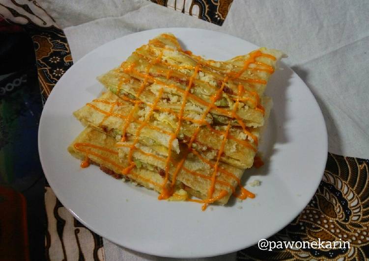 - Susun Roti Bakar Isi, beri mayonais dan taburan keju di atasnya. Roti siap dimakan..