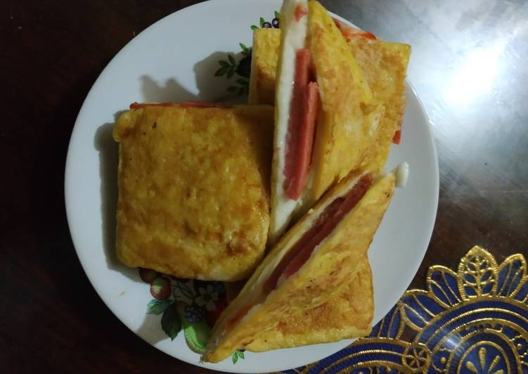 - Baluri roti yg sudah di isi pakai telur dan panggang pada teflon yang sudah diberi margarine sampai kecoklatan, ulangi sampai roti dipanggang semua, dan siap dihidangkan.
