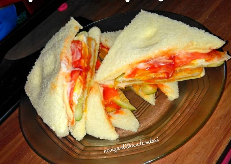 - Susun 1 persatu dari mulai, roti, burger, timun, saus pedas&mayonnaise, lalu telur, bubuhkan tomat, beri saus tomat&mayonnaise, setelah itu simpan keju slice diatasnya, tutup dengan roti lagi..